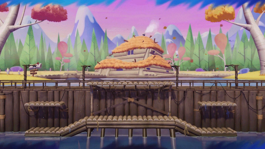 The stage takes place outside Norbert and Daggett's home, a major location in the series. Barry Bear can be seen in the background, who acts as a friend to the beavers.